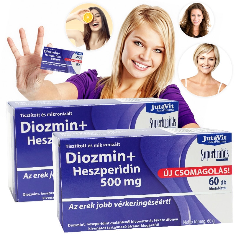 JutaVit Diozmin+Heszperidin 500mg készítmény, speciális növényi összetevők kombinációját tartalmazza, az erek jobb vérkeringéséért.