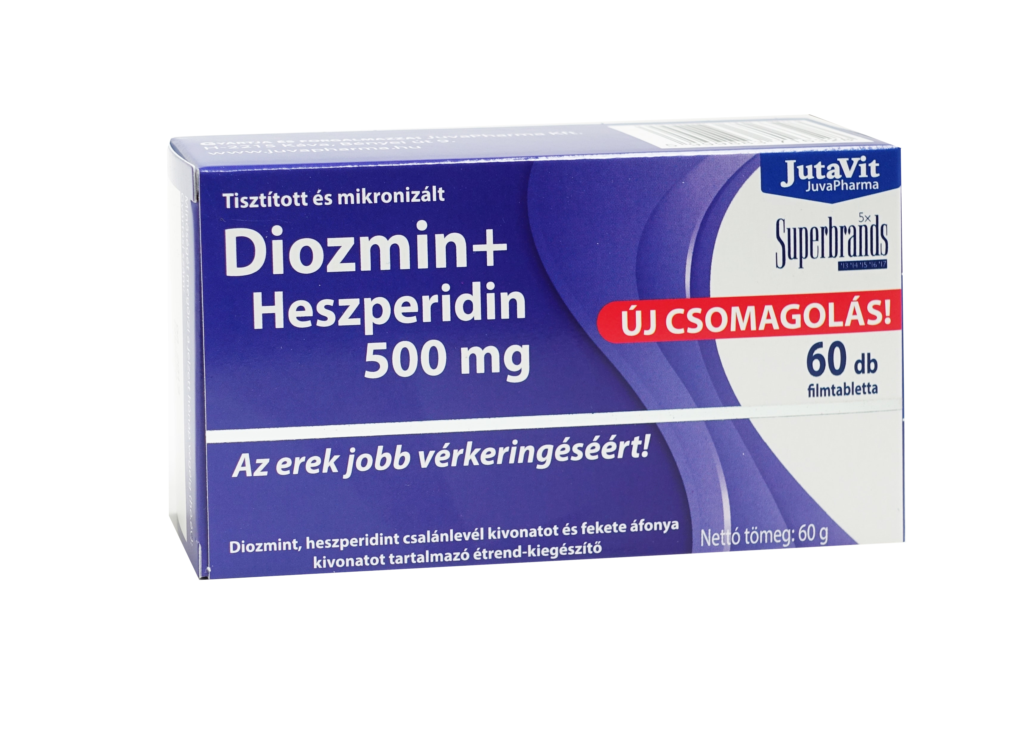 JutaVit Diozmin+Heszperidin 500mg készítmény, speciális növényi összetevők kombinációját tartalmazza, az erek jobb vérkeringéséért.